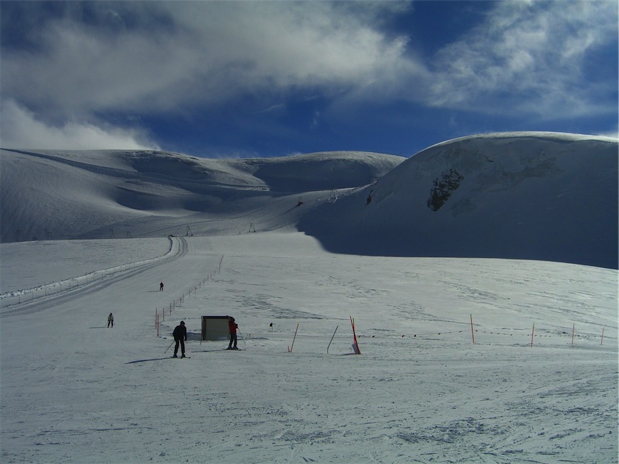 6) Punkt 2) erfordert natürlich entsprechende technische Gegenmaßnahmen. Ehrlich gesagt hat es mich schon maßlos gestört, direkt am Gletscherende unterhalb des Matterhorns auf eine Lanzenallee zu treffen. Sosehr ich mich über durch maschinellen Schnee ermöglichte verlässliche Talabfahrtsmöglichkeiten freue geht mir das dann aber doch zu weit.