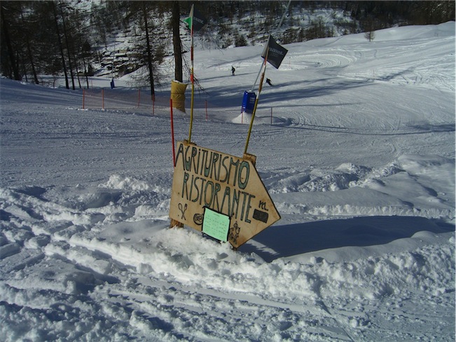 Restaurant in Valtournenche: von der Piste aus bist Du auf den Skiern in ungefähr 1 Minute Fahrzeit dort. Der Rückweg erfolgt dann über das Snowmobil des Wirts...