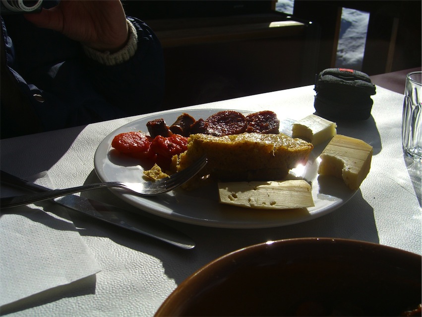 Ganz anders Valtournenche/Cervinia: Hier war es schlicht und einfach traumhaft - einschliesslich der neu beschneiten Talabfahrt. In Valtournenche/Cervinia hat es in diesem Jahr Schnee bis zum Abwinken (deutlich mehr als in Zermatt; Schneehöhen zwischen 2 und 3,5 Meter). Ausserdem: wenig Betrieb, super Pisten, herrlichster Pulverschnee. Und nicht zu vergessen ist auch die Gastronomie auf italienischer Seite (wobei ich der Fairness halber natuerlich auch diejenige auf Zermatter Seite erwähne, die ebenfalls extrem vielfältig und ausgezeichnet ist). In Valtournenche waren wir in einem spitzenmässigen Agriturismo abseits der Piste; nur zu empfehlen mit 3-Gang-Menus ab 10 EUR...