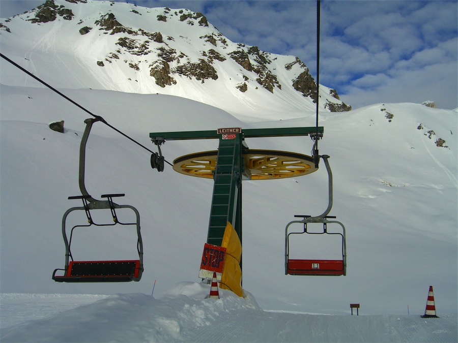 Dateikommentar: Sessellift Furgg-Sandiger Boden mit rechts: ehemaliger Talstation Skilift Sandiger Boden