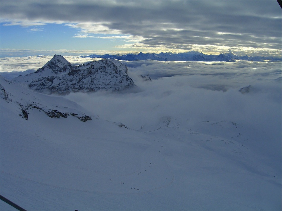 5) Die Gletscherregion um Kleinmatterhorn ist zwar nett, aber grad im Hochwinter oft nur theoretisch bzw. unter "Ausschaltung" aller normalen menschlichen Abwehrreaktionen gegen Kälte und Wind zu nutzen (und jetzt nicht mit Weichei daherkommen. Skifahren auf 3500m bei 50km/h plus Windstärke und -20 Grad ist tatsächlich nicht unbedingt vernünftig ...).