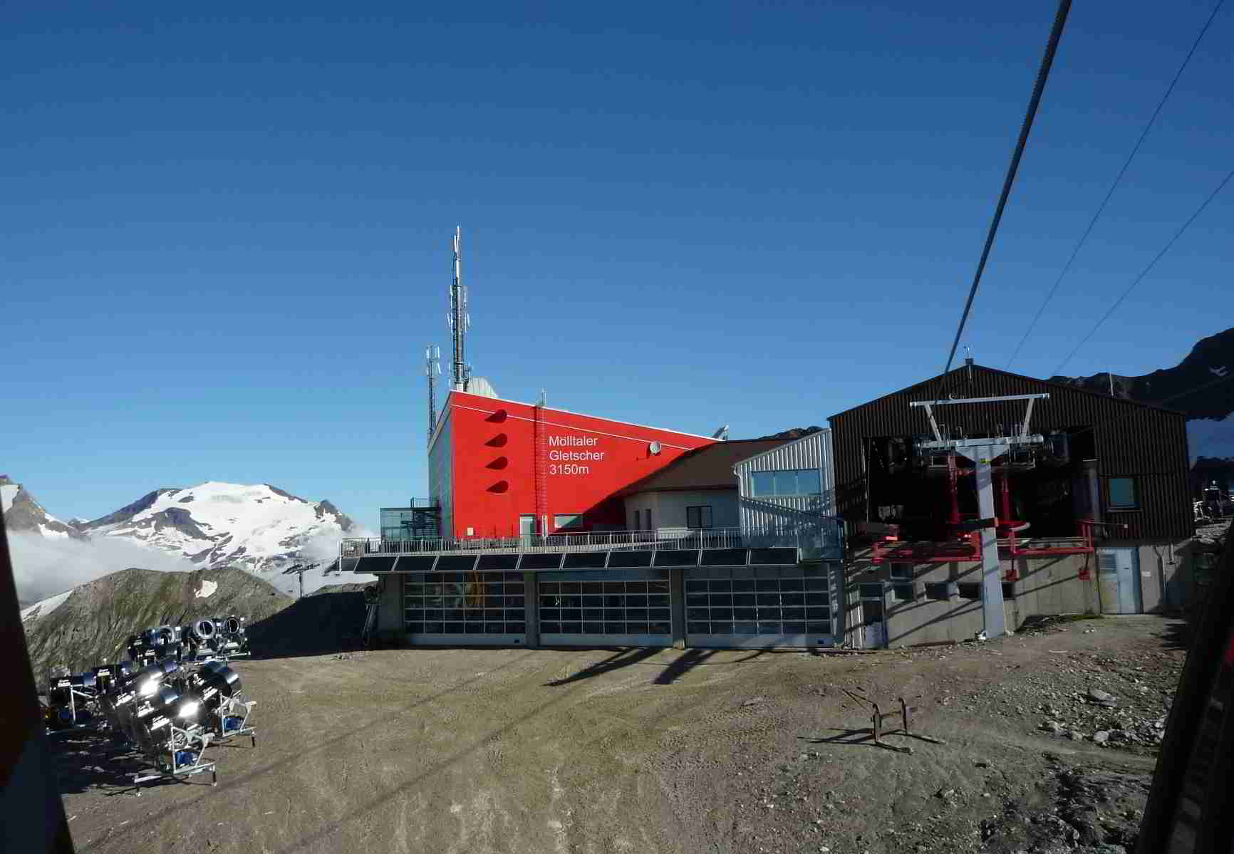 einfahrt in die bergstation der weisseebahn mit blick auf das gletscherrestaurant