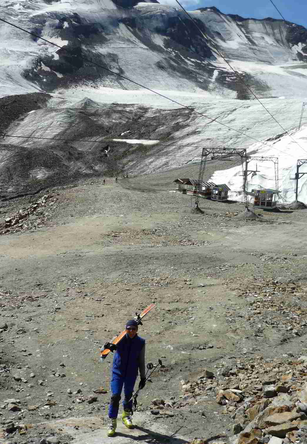 Da fährt er im Frühjahr und Frühsommer mit dem Rad an zig meterhohen Schneefeldern vorbei und ignoriert sie komplett und dann sucht er sich ausgerechnet den schneeärmsten Gletscher aus und rutscht auf dem Eis rum? Ich fass es nicht ... :-) Hmja, schaut sehr düster aus. Die Wand unterhalb der Weißseespitze, die Felsen im oberen Bereich der SL-Spur und der kaum noch vorhandene Restschnee. Im Vgl. schaut der Hintertuxer lt. Webcams ja noch sehr gut aus. Insofern kaum zu glauben, dass bis vor wenigen Jahren am Kaunertaler den Sommer über oberhalb der SL Mittelstation durchgehend skibetrieb war - von einigen wenigen Ausnahmesommern abgesehen :-( Zitat: Der Kaunertaler ist wohl eines jener Gletscherskigebiete, wo die Abschmelzung aktuell am Stärksten zum Vorschein kommt. Ich find's am Tuxerfernerhang eigentlich noch besser zu sehen ...