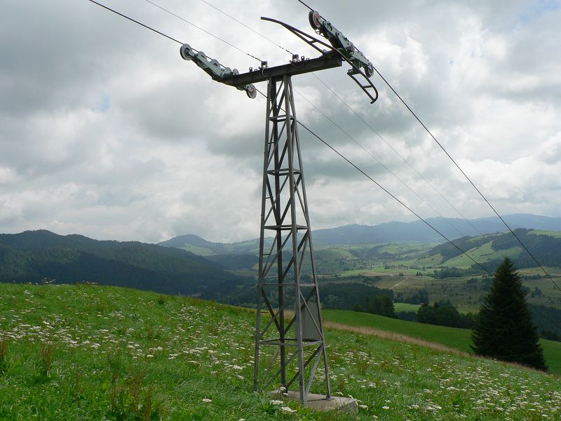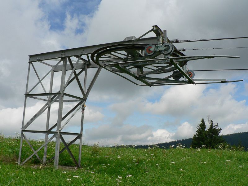 Dateikommentar: Der untere Teil der Trasse 625m lang. Es gibt im Winter noch 2 weitere Seillifte an diesem Berg die noch laufen.