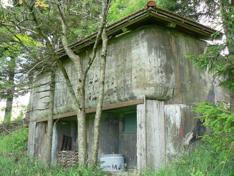 Dateikommentar: MG21 Bunker am Ratenpass. Hier getarnt als Kuhstall mit Ziegeldach. Die Holzverkleidung wurde entfernt.