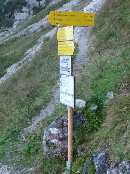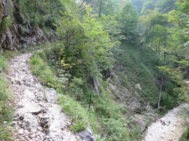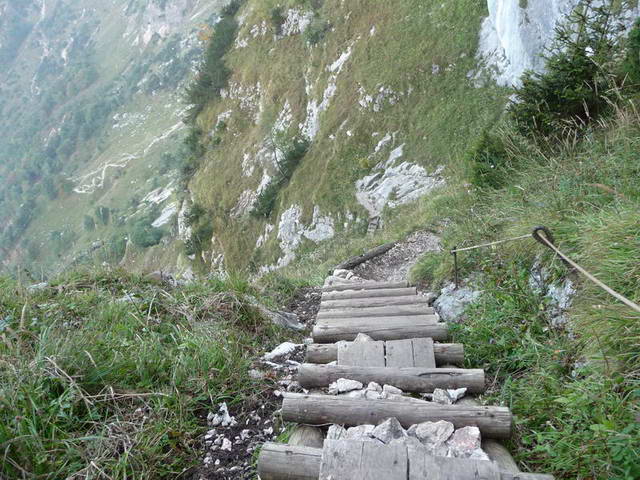 Dateikommentar: links geht eine Abzweigung zu den Gamslöchern, die ca. 50 Meter entfernt sind; Achtung Halterungen und Seile sind kaputt! aber nur beim Zugang zu den Gamslöchern !!!
