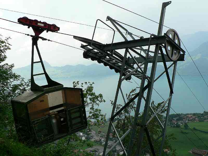 Dateikommentar: Luftseilbahn Emmetten-Hammen, auch öffentlich. Einfach klingeln hat aber handbetrieb darum gehts ab und zu etwas länger bis der Bauer vom Stall zur Station rüber gelaufen ist.