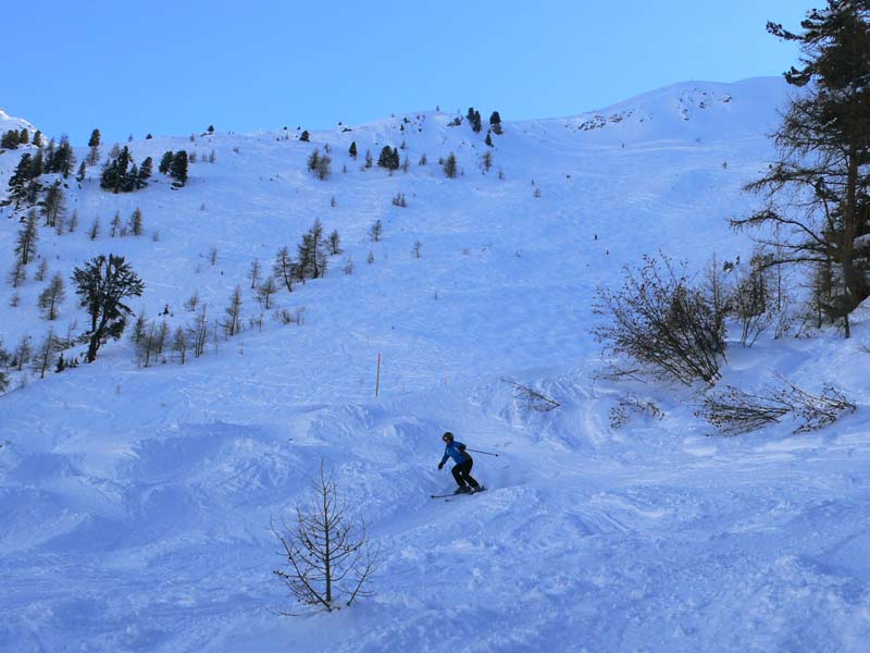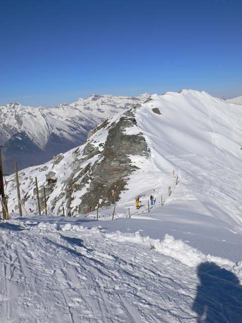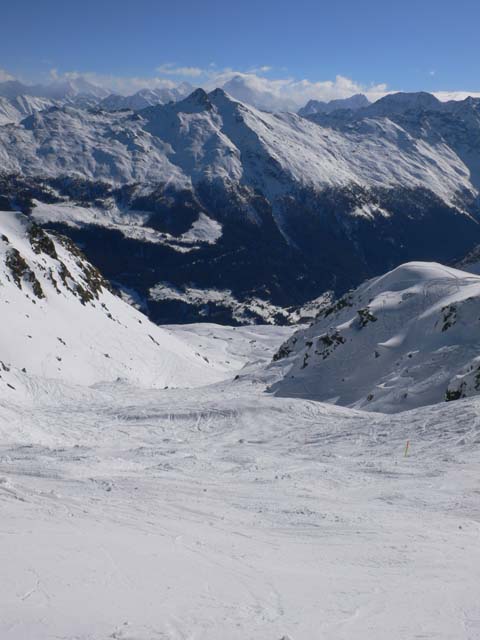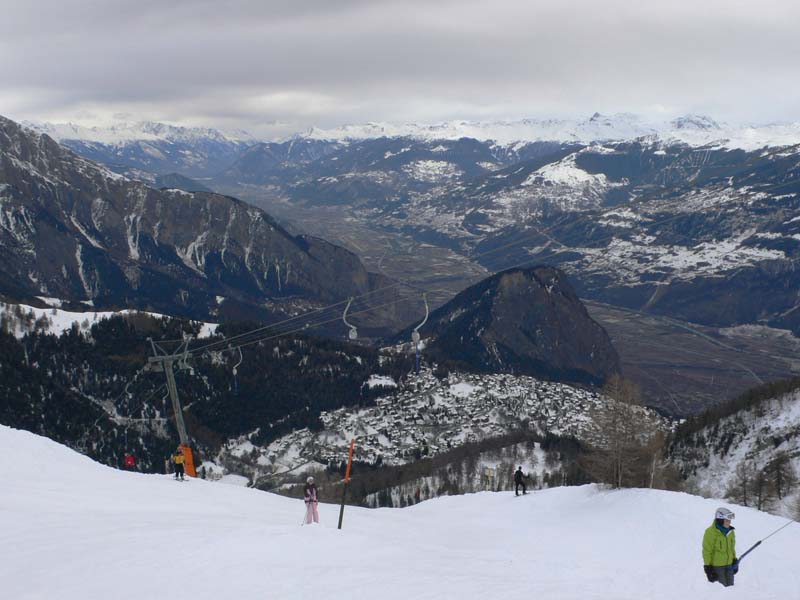 Die Kinder habe ich daheim gelassen. Wenn ich Kinder mitnehme, dann fahre ich auch mit ihnen und stecke sie nicht in einen Skischulkindergarten. Und da diese Gebiete - mit Ausnahme Ovronnaz - bei einer Komplettbefahrung völlig ungeeignet sind für Kinder - auch wenn sie einigermaßen Ski fahren können - habe ich sie ganz daheim gelassen.