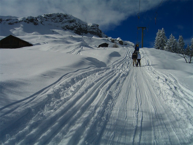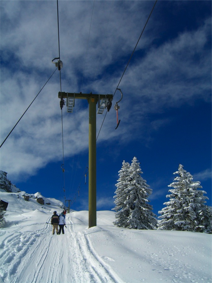 ... dass es vor vier oder fünf Jahren konkrete Pläne gegeben haben soll, den Sasolas-Lift durch einen Occasions-Zweiersessel zu ersetzen. ... Wobei: Für mich reicht der Sasolas-Lift vollkommen aus, auch wenn seine Fahrzeit in Relation zur Verweildauer auf den Pisten etwas gar lang ist...