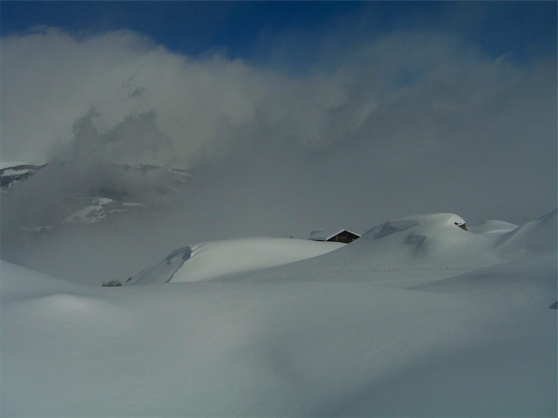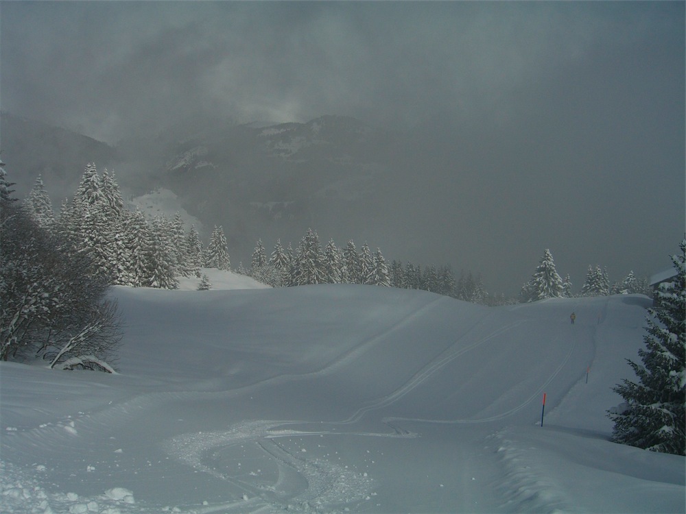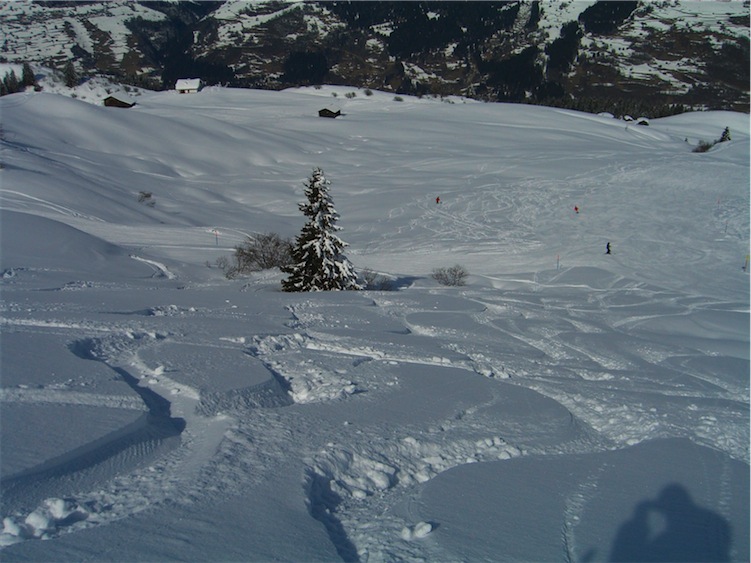Besonders in diesem Jahr war es sensationell, lag doch noch Mitte März so viel Schnee, wie zuletzt im so genannten "Lawinenwinter" 1999 gesehen. Unten auf 1200 Meter betrug die Schneehöhe so zwischen 80 cm bis 1 Meter, oben waren es zwischen 170 bis 200 cm. Reinster Pulver notabene. Zudem gab es Mitte der vergangenen Woche (7. bis 14. März nochmals 40 bis 50 cm dazu.