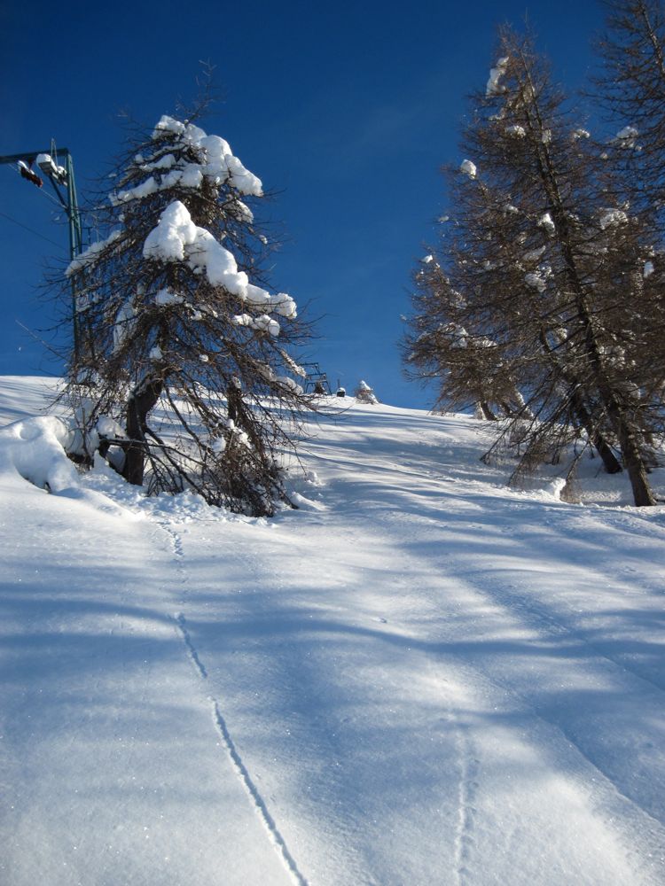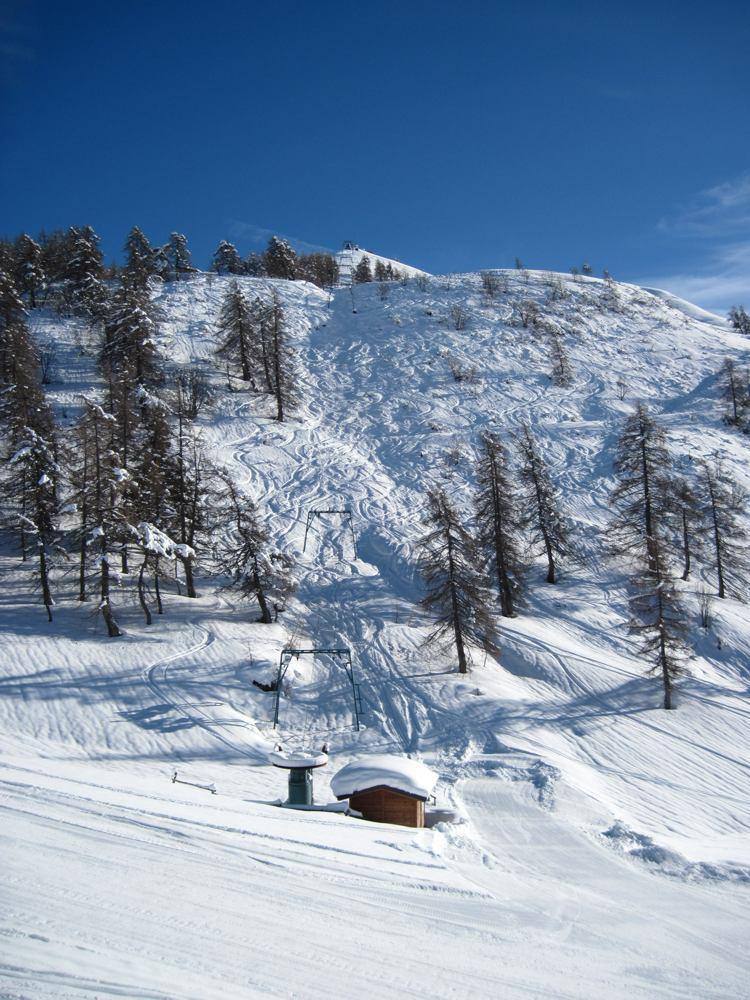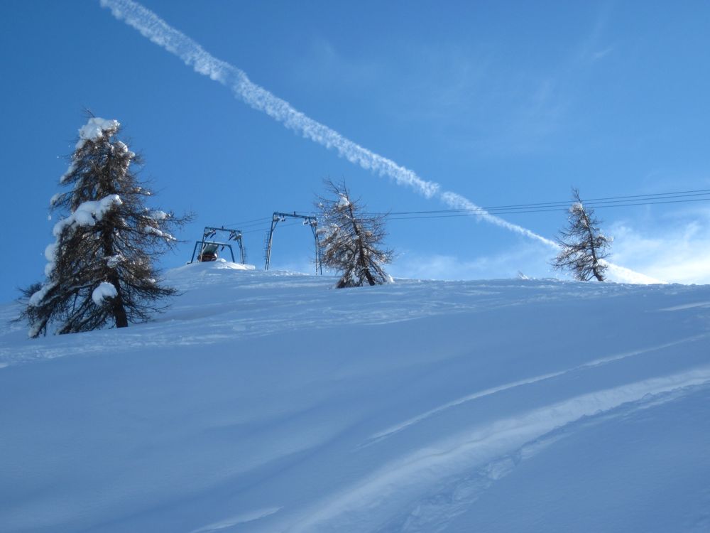 Deutlich reduziert wurden auch die Öffnungszeiten: Abgesehen von den Weihnachtsferien nur noch wochenends. Ebenfalls ein leider sehr negatives Zeichen ist, dass die "Hammeranlage" Cadino Alto NICHT in Betrieb war. Nicht mal die Bügel waren eingehägt. D.h. wohl eindeutig, dass man auf Sparkurs fährt, weil der Großteil der Pisten auch durch Misa bedient wird. Aber eben nicht die Gipfelpiste, und das ist extrem schade. Andererseits hat man dadurch mit nur relativ geringem Aufstieg eine Wahnsinns-Pulverabfahrt für sportlichere Skifahrer ermöglicht... eine Wucht.