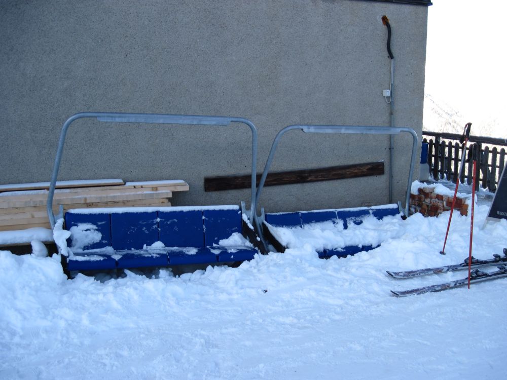 Dateikommentar: Diese Sitze - die modernsten FBM des gesamten Gebietes - dienten bis vor 2 Jahren als Tischgarnitur in der kleinen Kneipe an der Bergstation der DSB Misa, inzwischen schon wieder ausrangiert! siehe http://www.sommerschi.com/forum/viewtopic.php?p=20509#p20509