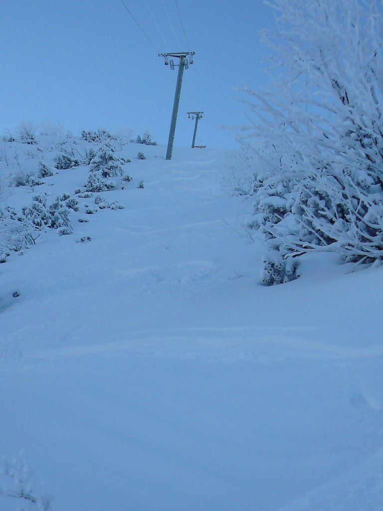 Ich hab mal ein Foto gesehen wo der untere Hang am ESL eingewalzt war. Bei meinem Besuch war aber nichts hergerichtet - ich glaube da ist kein ofizieller Skibetrieb mehr. Ob man mit dem ESL mit Ski rauffahren kann ist mir nicht bekannt - die Piste geht jedenfalls zu fahren. Oben glaub ich gabs noch nie Skibetrieb. Ich stell mal ein paar Bilder ein... |