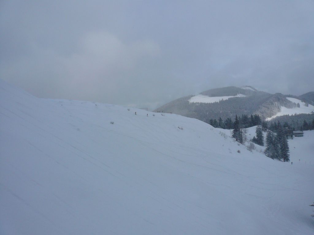 An Mittelstation war die Bahn natürlich wieder abgefahren so dass ich bei der nächsten Fahrt gleich den Bründlinglift angesteuert habe. Ein Glücksgriff und die 3. positive Überraschung. Das teils walddurchsetzte Almgelände bietet einige nette Hänge und kaum jemand der sie nutzt (Die Kinderskikurse bleiben auf den Pisten).