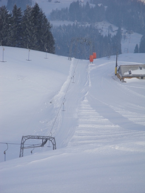 Dateikommentar: Der Skilift Wolzenalp: „interessantes“ Trassee und Hauptbeschäftigungsanlage. 350 hm auf 1.7 km