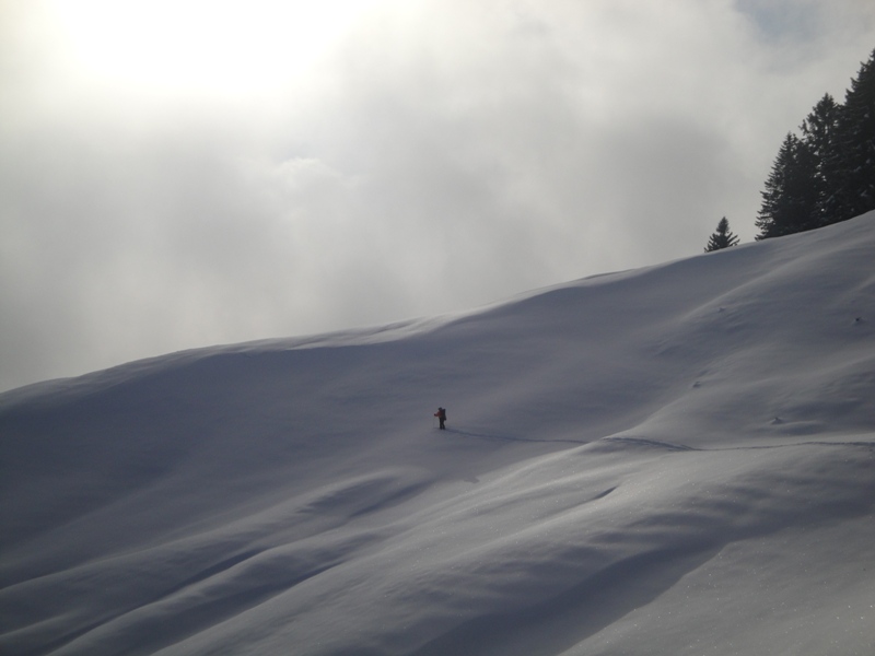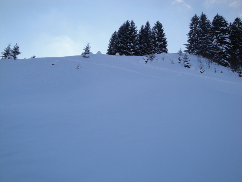 Dateikommentar: Rechts nochmals die „Variante“. Den auf dem oberen, unpräparierten Hang war ich auch der Erste in dieser Saison.