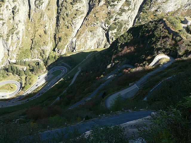 Zur Teufelsbrücke mein Wikipedia: Zitat: Die Schöllenenschlucht war seit Alters her ein nur schwer zu überwindendes Hindernis auf der Route über den Gotthardpass, die den Schweizer Kanton Uri mit Italien verband. 1230 wurde die erste Brücke über die Reuss errichtet, die den Weg zum Gotthardpass erheblich erleichterte. Die Brücke war aus Holz errichtet und musste aufgrund der widrigen Verhältnisse oftmals erneuert werden. Im 16. Jahrhundert wurde die Holzbrücke dann durch eine massive Brücke aus Stein ersetzt. Während des Zweiten Koalitionskriegs fanden in der Umgebung der Schöllenenschlucht am 25. September 1799 Kampfhandlungen zwischen napoleonischen Truppen unter Claude-Jacques Lecourbe (1758-1815) und von General Suworow befehligten russischen Truppen statt. Die erste Teufelsbrücke wurde dabei schwer beschädigt und unpassierbar. Erst über 30 Jahre später wurde mit der zweiten Teufelsbrücke Ersatz geschaffen. Die Reste der ersten Brücke wurden erst 1888 von der Reuss in einer stürmischen Nacht gänzlich zerstört. Auf der linken Flussseite sind ihre Fundamente noch sichtbar Zitat: Nach dem Ende des Zweiten Koalitionskrieges herrschte im Kanton Uri wirtschaftliche Not, die Brücke und der Passweg konnten aufgrund fehlender Mittel vorerst nicht wieder begehbar gemacht werden. Der Verkehr nach Süden wurde zunehmend über den Splügenpass abgewickelt. Erst 1820 konnte der Auftrag für die Errichtung der zweiten Teufelsbrücke erteilt werden, die nach zehnjähriger Bauzeit fertig gestellt wurde und auch heute noch besteht Zitat: Die Zweite Teufelsbrücke war Mitte des 20. Jahrhunderts den Anforderungen des modernen Verkehrs nicht mehr gewachsen. 1958 wurde daher in unmittelbarer Nähe der zweiten Brücke die Dritte Teufelsbrücke errichtet, die mit zwei Spuren den steigenden Verkehr besser aufnehmen konnte. Über ihr prangt an der Felswand ein markantes Teufel-Wandbild des Urner Malers Heinrich Danioth. Zitat: In der Nähe der Teufelsbrücke befindet sich das Suworow-Denkmal, welches an die Schlacht von 1799 erinnern soll. Es wurde 1899 von Russland zu Ehren Suworows und der gefallenen Soldaten errichtet. Der Bau erfolgte nach Genehmigung durch die Schweiz. Es wird fälschlicherweise oft angenommen, dass das 563 m² große Areal russisches Hoheitsgebiet darstellt. Das Denkmal ist allerdings weder eine Exklave Russlands in der Schweiz, noch stellt es ein exterritoriales Gebiet dar. Das Land gehört nur im zivilrechtlichen Sinn Russland. Die betreffende Parzelle (Grundbuch Andermatt, Kanton Uri) ist dem schweizerischen Recht uneingeschränkt unterworfen und bildet Bestandteil des schweizerischen Territoriums. Zitat: Einer Sage zufolge wurde die Erste Teufelsbrücke vom Teufel errichtet. Die Urner scheiterten immer wieder an der Errichtung einer Brücke. Schliesslich rief ein Landammann ganz verzweifelt aus: "Do sell der Tyfel e Brigg bue" (Soll doch der Teufel da eine Brücke bauen). Kaum ausgesprochen, stand er schon vor der Urner Bevölkerung und schlug ihnen einen Pakt vor. Er bestand darin, die Brücke durch den Teufel errichten zu lassen und als Gegenleistung dem Teufel die Seele desjenigen zu geben, der als erster die Brücke überquert. Nachdem der Teufel die Brücke gebaut hatte, wurde ein Ziegenbock über die Brücke geschickt. Der Teufel war über diesen Trick sehr erzürnt und holte einen haushohen Stein, mit dem er die Brücke zerschlagen wollte. Es begegnete ihm eine fromme Frau, die ein Kreuz auf den Stein malte. Als der Teufel dieses sah, ergriff er die Flucht und liess Stein und Brücke liegen. Der Stein wurde Teufelsstein genannt. 1977 wurde der 220 Tonnen schwere Teufelsstein mit einem Budget von 300'000 Franken um 127 Meter verschoben, um der Gotthard-Autobahn Platz zu machen. Die Verschiebung des Teufelssteins wird in einer modernen Erweiterung der Volkssage für die unerklärliche Häufung von Verkehrsunfällen auf dem Kilometer 16 des Gotthard-Strassentunnels verantwortlich gemacht.