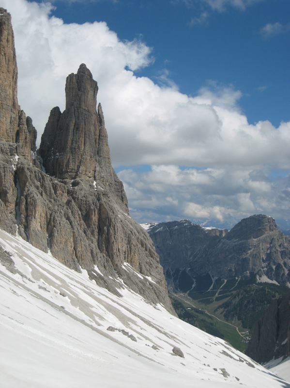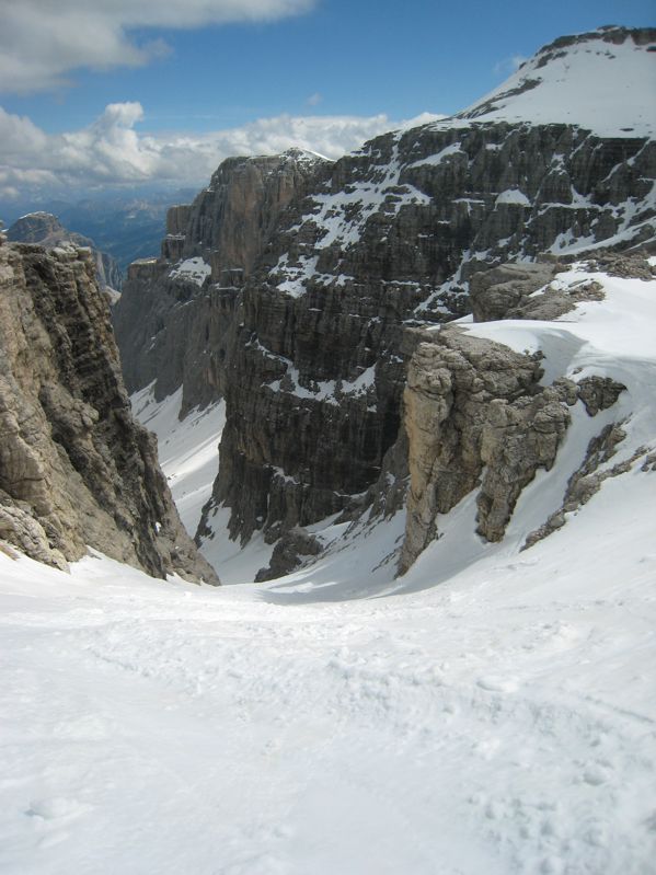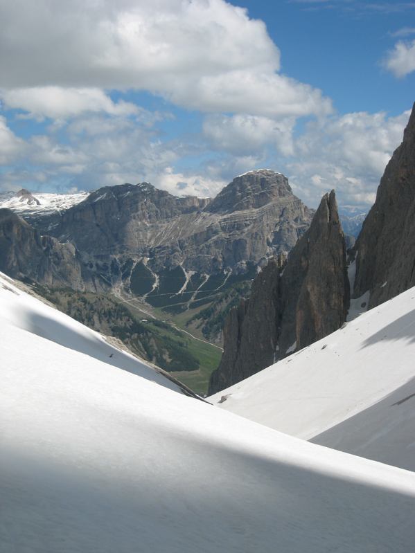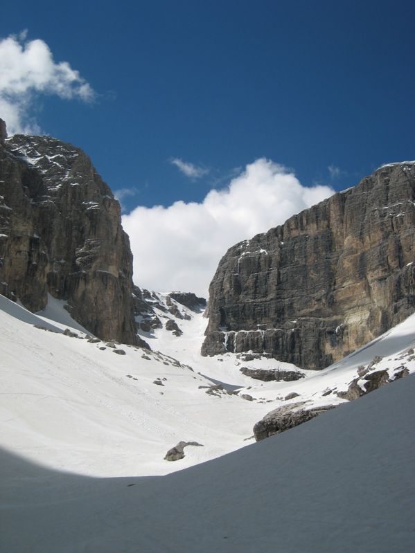 Der Mai ist in den Hochlagen der Dolomiten grundsätzlich ein sehr lohnender Tourenmonat. Was genau eine "Hochlage" ist, kann von Jahr zu Jahr natürlich variieren. Nach schneeärmeren Wintern oder bei sehr warmen Frühjahr kann sich das auf Lagen oberhalb 2500m beziehen (Ausnahme Marmolada). Dagegen sind nach schneereichen Wintern mit kühlem Frühjahr sogar Abfahrten auf südlich exponierten Hängen bis 2000m möglich.