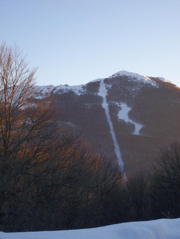 Sicilia/Basilicata Februar 2012: Ätna - Piano Battaglia - Sellata/Arioso - Laceno Der Start via Alpe Mondoví: Mittwoch Abend, 22.2., will ich zum 5tägigen Kurzurlaub nach Süditalien starten. Wie nicht ganz anders zu erwarten war, ist natürlich noch das eine oder andere zu erledigen, so dass ich verspätet loskomme, es ist ca. 23 Uhr. Erstes Ziel ist die Alpe Mondoví in den Seealpen oberhalb von Cuneo. Angesichts der noch bevorstehenden 4500km und der hohen Spritpreise lege ich eher den Spargang ein und fahre nur 100-110km/h. Für die Alpe Mondoví genügt mir grundsätzlich auch eine Nachmittagskarte, so dass keine Eile geboten ist. Mich ärgern zunächst wieder mal die Autobahnpreise der Schweiz, 40€ Vignette + 36€ für ein Wohnmobil durch den Großen St. Bernhard. Letzteres war mir neu. Für diesen Preis kann man auch eine längere, aber mautfreie Route wählen. Doch bald ist angesichts des schönen Morgengrauens der kurze Ärger verflogen und es geht problemlos über Aosta und Turin weiter bis nach Frabosa an der Alpe Mondoví. Zuhause hatte ich den Foto nicht gefunden, was mich zuerst nicht störte, weil die meisten Gebiete ja schon bekannt und dokumentiert sind. Allerdings kam schon bei der Anfahrt zur Alpe das schwere Gefühl auf, dass man die Stimmung von Seealpen, Apennin und Sizilien doch besser in Bilder als in Worte fasst. Nunja, jetzt schon mittags 11:30 Uhr wollte ich erst mal auf die Ski springen, Bilder hin oder her. Die Alpe Mondoví ist ja hier schon bestens dokumentiert, z.B. http://www.alpinforum.com/forum/viewtop ... 48&t=38800 Sie ist ein ansehnliches Skigebiet mit fantastischem Ausblick über die noch schneebedeckte Poebene, in dem man schon mehr als einen halben Tag braucht, um einmal rumzukommen. Besonderes highlight ist ein alter, 2km langer Einzelsessel auf den Monte Moro mit 800m Höhenunterschied, wobei man die Ski in die Hand nehmen muss und keine Fußrasten die Füße stützen. Der Sessel ist unter „Kennern“ natürlich beliebt. Er ist m.E. in gutem Zustand und wird auch als „seggiovia storica“ beworben. Offenbar will man ihn nicht einer Skigebietsbanalisierung zugunsten einer kuppelbaren 08/15-Bahn preisgegeben? Schön! Man hat ihm kürzlich sogar Sitzpolster verpasst (siehe z.B. Starlis Bericht oben). (von http://www.mondole.it/index.php?id=12458) ![]() Wetter und Schnee sind prächtig, lediglich ein paar Kondensstreifen von Flugzeugen stören das Blau des Himmels. Einziger negativer Punkt ist, dass die "obenrum"-Verbintung via Kurven-SL (11 & 12) zwischen Prato Nevoso und Artesina nicht geöffnet ist. Dort hat der Wind zu sehr verblasen. Zum Vergleich, starlis gps-track: ![]() Die herrliche Umgebung lässt in mir die Entscheidung reifen, am Abend nun doch auf die Suche nach einem Foto zu gehen. Ich wollte mir für Bergausflüge sowieso mal eine kleine, möglichst flache Digicam für Hemd- und Hosentasche kaufen, so dass dafür nun wohl der richtige Zeitpunkt gekommen ist. Nach kurzer Suche stoße ich auf einen IPERCOOP mit einer ansehnlichen Technik-Abteilung. Auch eine kleine, flache, 10MPixel Cam ist schnell gefunden. Mitlauschen des Beratungsgesprächs des Vor-Kunden half mir bei der korrekten Aussprache der Fachbegriffe Der Kauf wird sich lohnen… Als nächstes steht also der „lange Zinken“ bis Kalabrien an. Es ist Donnerstag Abend, und meine Tour-Planung muss ja berücksichtigen, dass einige Skigebiete nur am Wochenende Vollbetrieb haben. Das ist in Mittel- und Süditalien so üblich, weil man sich hauptsächlich nur durch Wochenendegäste über Wasser halten kann. So ging’s also über die Gebirgsautobahnen nach Genua und weiter nach Pisa und Livorno. Die Autobahnen sind so aufregend, dass keine Müdigkeit hochkommt. Hinter Livorno wird’s jedoch flach und langweilig. Zwei CDs halfen mir noch durch Lazio bis südlich von Rom. Doch dann musste mal wieder ne Mütze Schlaf her, also rein ins Bett und bis 6 Uhr gepennt. Ich wollte zwar zu dieser Zeit schon bei Salerno sein, aber das war halt nicht möglich. So kam es nun, dass mir die baustellenreiche – weil gerade komplett neu designte – Autobahn durch den südlichen Apennin zu Tagesverkehr (und leider nicht nachts) vor der Brust lag. Die Fahrt durch insgesamt 140km einspurige Baustellen hinter untermotorisierten LKW ist entsprechend aufreibend. Dennoch ist die 450km lange Autobahn natürlich nach wie vor „der Hammer“! Aufgrund des Zeitverzugs habe ich dann aber Gambarie, ein kleineres Skigebiet am Aspromonte, aus der Planung gestrichen und mich lieber auf das Wesentliche konzentriert: rüber nach Sizilien. Schließlich ist bestes Wetter vorhergesagt! Einige Impressionen von der Fahrt durch den südlichen Appennin: Vesuv im Morgengrauen Dateianhang: Seltsame Abbaumethode um Strommasten rum Dateianhang: Nebel im Hochtal von Lauria Dateianhang: Baustellen, Baustellen, Baustellen. Die komplette A3 wird neu gebaut Dateianhang: Bei Lauria Nord, Schnee bis in die Tallagen Dateianhang: Es geht auf Cosenza zu, der Frühling lässt grüßen Dateianhang: Dateianhang: Hinter LKWs geht's langsam. Komplettneubau von Tunnel und Brücken Dateianhang: Das Cap von Messina mit den riesigen Strommasten - nicht mehr in Gebrauch Dateianhang: Bei den „Tragetti“ wurde ich allerdings erstmal wieder übers Ohr gehau’n. Ich löste ein Ticket für Camper, ohne auf irgendwelche Kategorien zu achten, und der finanztüchtige Verkäufer hat mir „Camper Super“ für 66€ hin und retour angedreht. Mist. Hab’s zu spät gemerkt, dass wohl auch Autovetture für unsere Größe genügt hätte. Weiter zum Piano Battaglia: www: http://www.pianobattaglia.it/ http://www.pianobattaglia.net/ Die Überfahrt am frühen Nachmittag hat sich aber dennoch gelohnt, denn die Uhrzeit passte noch genau, um 2h weiter bis oberhalb von Cefalu zum Piano Battaglia in den Alpi Madonié zu fahren. Das ist ein ehemaliges kleines Skigebiet, das aufgrund des Ablaufs der „vita technica“ der 3 Schlepplifte nach 35 Jahre