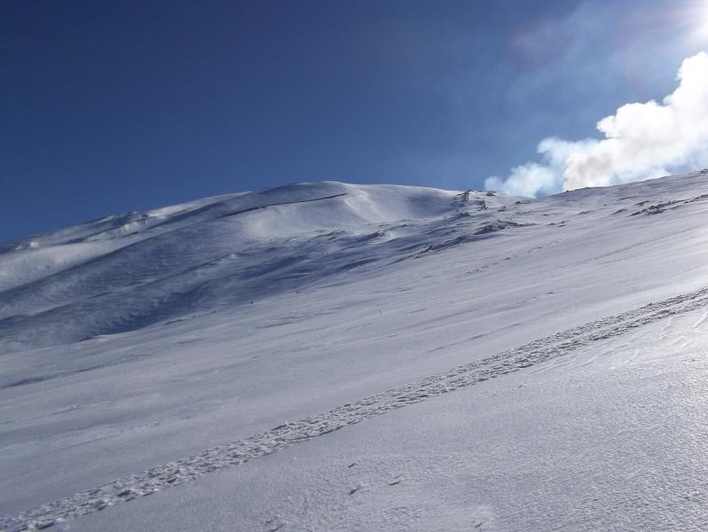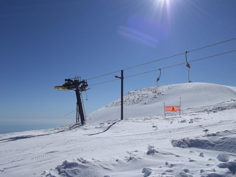 Nun geht’s zur zweiten und für mich neuen Etappe am Ätna: Etna Nord am Piano Provenzana. www: http://www.etnasci.it/aree-sciistiche/l ... -etna-nord Es gibt auf der Nordseite des Ätna oberhalb von Linguaglossa ein zweites kleines Skigebiet am Piano Provenzana. Dieses Gebiet ist nicht ganz so bekannt wie Etna Sud und wurde ebenfalls 2002 zerstört, aber mittlerweile nach 10 Jahren wieder aufgebaut. Nördlich von Catania der Blick auf das Valle del Bove am Ätna Dateianhang: Zufahrt durch das kleine Ätnastädtchen Linguaglossa Dateianhang: weiter in Richtung Piana Provenzana. Der Ätna raucht kräftig. Dateianhang: Die Zufahrt bringt wieder eine nette Begebenheit – Sizilianisch par excellence. Auf der Zufahrt zum Piano Provenzana türmen sich rechts und links der Straße die zusammengeräumten Schneemassen, so dass kein Straßenschild mehr zu sehen ist. Dies hat zur Folge, dass eine Gruppe von Autofahrern – zwei dicke BMWs vor mir und ich mit dem Wohnmobil hinterher – bei einer Abzweigung vor dem Parkplatz einfach mal die rechte der beiden Möglichkeiten nehmen. Nach ca. 300m wird der geräumte Teil der Straße nur 2,5m breit mit 2m Schneewänden beidseits. Und irgendwann nach weiteren 200m hört die Räumung einfach auf. Keine Wendemöglichkeit. Inzwischen sind uns natürlich weitere Autos gefolgt! Also… der ganze Blechwurm bitte rückwärts… Das hat schon Spaß gemacht! Dateianhang: Beeindruckend ist auch, wie die Besitzer von Ski- und Rodel-Verleihen mühsam ihre Hütten ausbuddeln. Wieder bin ich froh um die Kamera, sonst glaubt ja niemand, dass man erstmal ein Stockwerk eine Schneetreppe hinabsteigen muss, um dann durch eine 2m hohe „Schneeschlucht“ in eine Hütte zu gelangen. Dateianhang: Dateianhang: Dateianhang: Am Piano Provenzana surren eine kuppelbare 4er Sesselbahn sowie 3 Schlepplifte. D.h. es „sollten“ surren. Denn ein Schlepplift wurde nicht ganz fertig; da stehen nur die Stützen ohne Rollen rum. Und ein zweiter, der höchstgelegene (Anfiteatro), wurde Anfang Februar als Neueröffnung gemeldet. Blöderweise kam dann vergangene Woche ein Schneefall dazwischen und das bedeutet am Ätna: Ausschaufeln! Nun ja, man kann natürlich auch abwarten, bis der Schnee zusammengesackt ist, was bei 3m aber noch bisschen dauern kann. Vor 2002 war Piano Provenzana ein reines SL-Gebiet: (von http://www.etnasci.it/aree-sciistiche/l ... -etna-nord) ![]() Nach der Zerstörung wurden SL 1 und 2 zur 4KSB Puochoz zusammengefasst. SL 3 (Conca) ist eine recht neue Leitner-Anlage und SL 4 Anfiteatro ein neuer Graffer-SL, der weiter hinaufgezogen wurde als früher. SL 5 wird gerade wieder aufgebaut. Es stehen 13 Stützen ohne Rollenbatterien und ohne Berg- und Talstation. Am SL Conca und der 4KSB - weite Carving-Hänge und viele offpiste Möglichkeiten. Dateianhang: Dateianhang: Dateianhang: Dateianhang: Dateianhang: Dateianhang: Neubau des SL und Bergstation der 4KSB Dateianhang: Dateianhang: Anscheinend gehen desöfteren die Pistenraupen kaputt. Es standen gleich zwei kaputte Boliden auf den Pisten Dateianhang: Dateianhang: SL Anfiteatro tief eingeschneit. Dateianhang: Dateianhang: