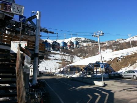 Start morgens in Huez an der Televillage, fahre ich kostenlos hoch, da ich noch keinen Skipass habe. Beim Skipass Kauf