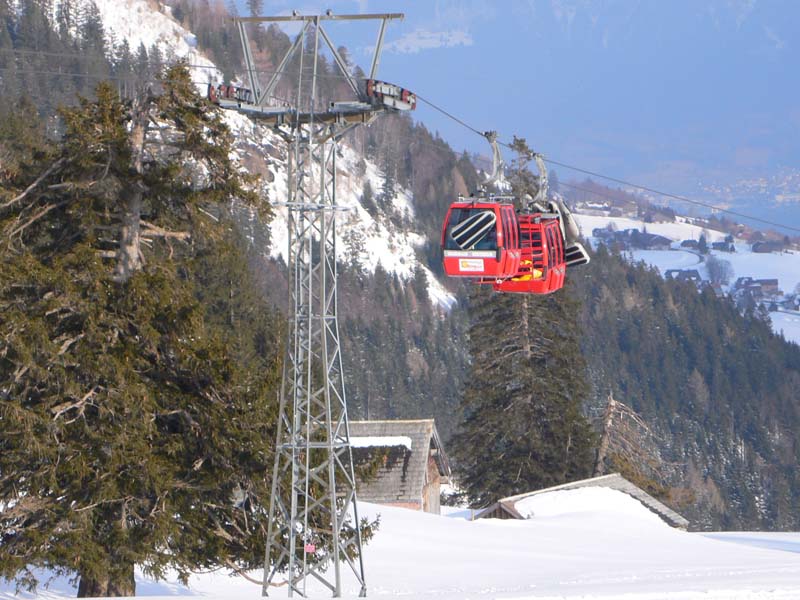 ^^ Die Fahrt ist kurzweilig, man kann die Kabinen der Chäserugg-Bahn beim Pendeln beobachten und sich an den bizarren Churfirsten erfreuen.