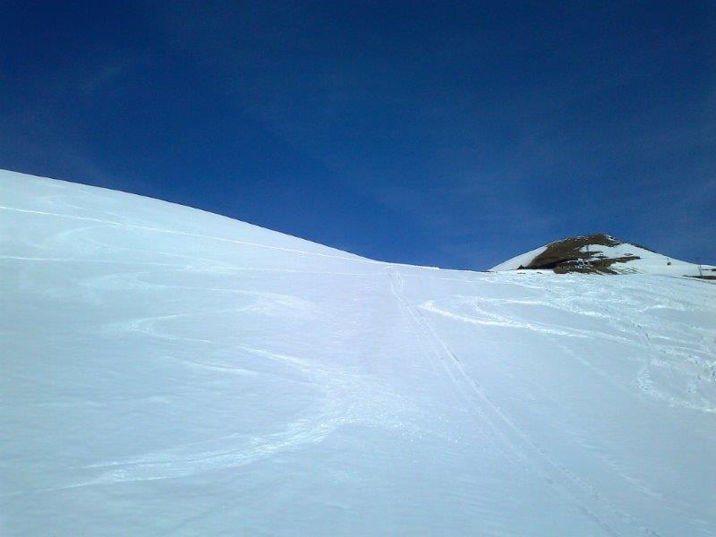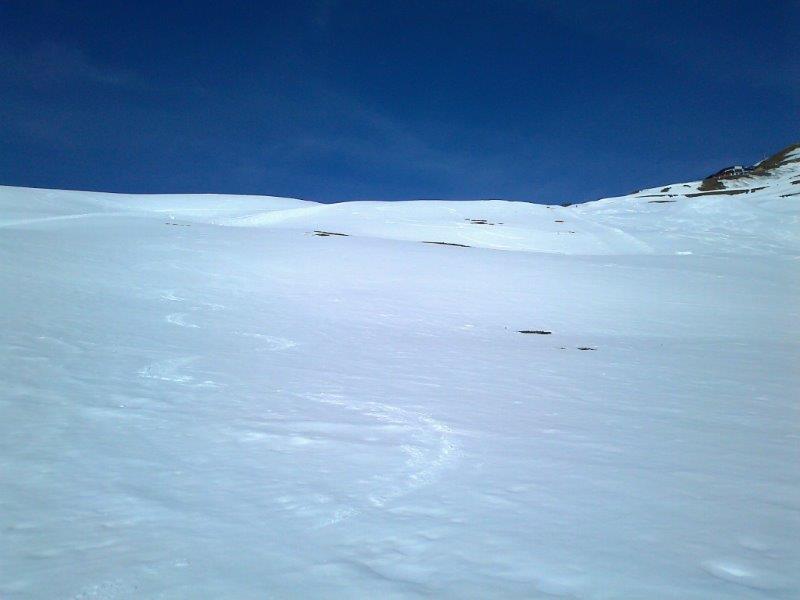 ^ Das gute an der geringeren Schneehöhe, dass man die querenden Pistenraupenspuren einfacher queren konnte.