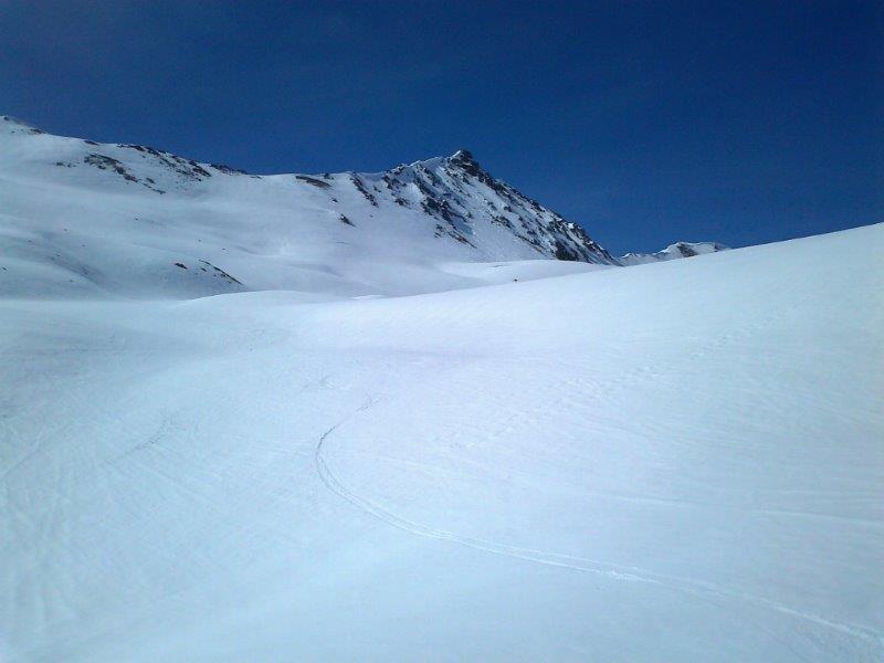 ^ Das gute an der geringeren Schneehöhe, dass man die querenden Pistenraupenspuren einfacher queren konnte.