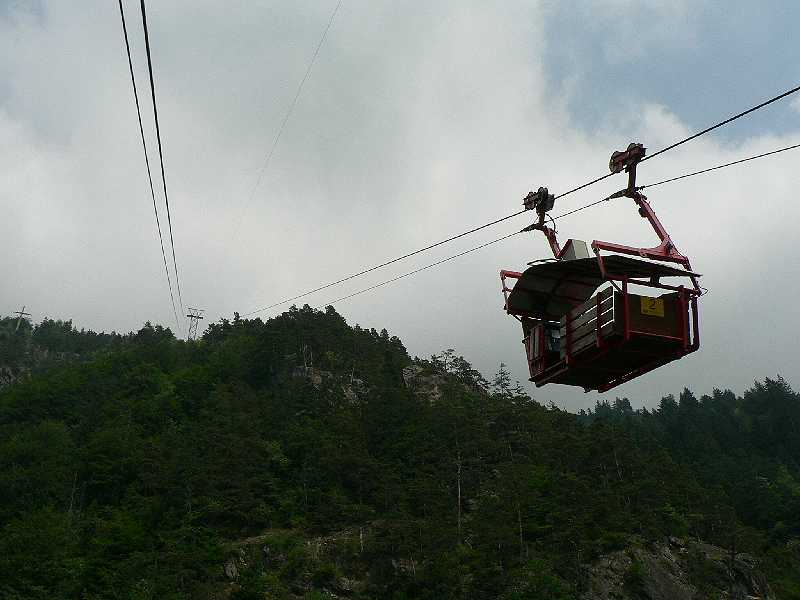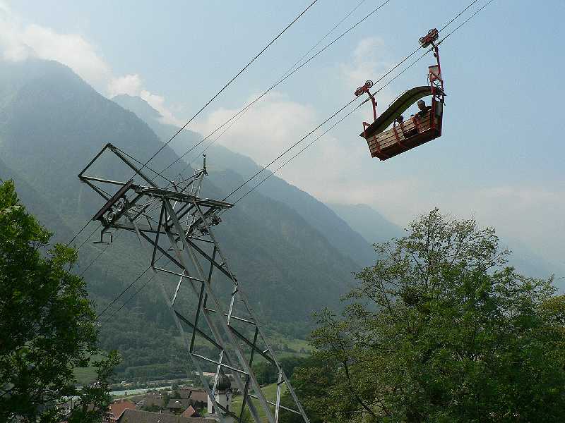 Verkehrsüberschwemmt ist das Urner Reusstal. Alles was Richtung Süden will passiert dieses Tal. Ob auf der Schiene oder Strasse. Dass es aber eine Terasse darüber weit weniger stinkig zu und her geht zeigte der Bericht vom Arni. Nun folgt das nächste Kleinod etwas weiter das Tal runter. Erstfeld. Energiestadt. Ja Stadt. Das Kaff nennt sich wirklich Stadt. Lebt von der Eisenbahn. Hier werden die Güterzüge von ganz Europa umgespannt denn die meisten Europäischen Flachlandloks eignen sich für die Passfahrt nicht. Hier werden sie gegen die berüchtigte Re 10/10 ausgetauscht. Auch wenns 2 Loks sind. Wer allerdings vom Eisenbahn gucken genug hat, kann sich in Erstfeld einer Seilbahn widmen. Die zwar klein ist aber dafür um so krasser. Läuft man aus dem Bahnhof muss man nur den Wegweisern folgen. Die Talstation steht versteckt hinter einem hässlichen 70er Jahre Hochhaus wie so viele hier. Ziemlich verwachsen hier hinten. Die Bahn ist steil. Sehr steil. Innerhald von 5min ist man von 470m auf über 1100. Bahn wurde 1953 gebaut. Typische Konkordatsbahn. 4er Kabinen. Unbesetzte Talstation. Die Stütze 1 besteht aus einem Kuppengerüst. Stütze 2 ist in der Bergstation eingebaut. Bahn wurde mehrere male renoviert. Parallel verläuft eine Wasserbetriebene Transportbahn bis Stütze 2. Für das Sägewerk auf dem Felsvorsprung. Coole Anlage. Bedient von einer etwa 90 Jährigen Frau. Ausgangspunkt für einen Höhenweg nach Süden..... Teil 2 folgt.
