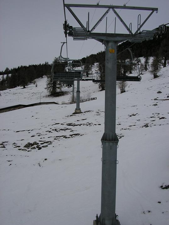 Wenn ich das wüßte... ich kam leider nicht näher dran, weil überall eingezäunt war und gebaut wurde. Leider nicht aufgenommen auf Kamera: es gab unterschiedliche Stützenprofile: die hier dargestellten (ich nenne sie mal) U-Bögen und auch L-Stützen (umgekehrt). Sorry, aber ich bin leider kein Liftexperte. Vielleicht weiß jemand anderes mehr. |