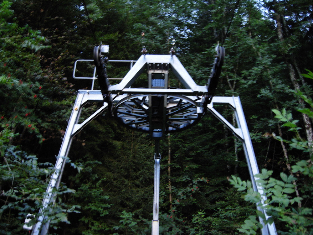 Was dass? Städelimasten in einem Müllerlift? Ja der Lift wurde immer wieder frisiert. Die Fahrgeschwindigkeit wurde dabei auf die maximalen 3,7m/s aufgemotzt. 1000p/h sind hier wirklich realistisch. Dafür sorgt der Doppeleinstieg.