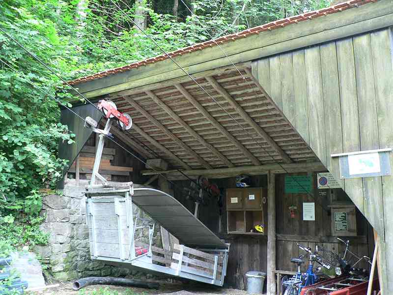 Dateikommentar: Um mit zu fahren muss man hier klingeln. An schönen Tagen bekommt man sofort Antwort. Da die Bahn hand Betrieb besitzt muss an der bergstation ein Seiler anwesend sein.