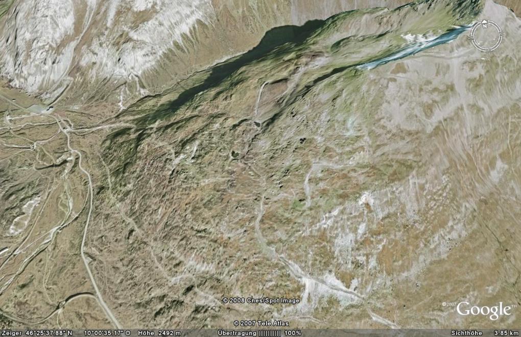 Man sieht auf GEarth übrigens noch einige deulich Spuren des Schigebiets, vor allem in der 3D Ansicht kommen die gut raus. Beispielsweise die Verbindungswege nach Lagalb, mindestens eine SL Trasse (die äußerste), es sieht auch fast so aus, als stünde auf dem Photo noch die Bergstation der DSB... ?!?