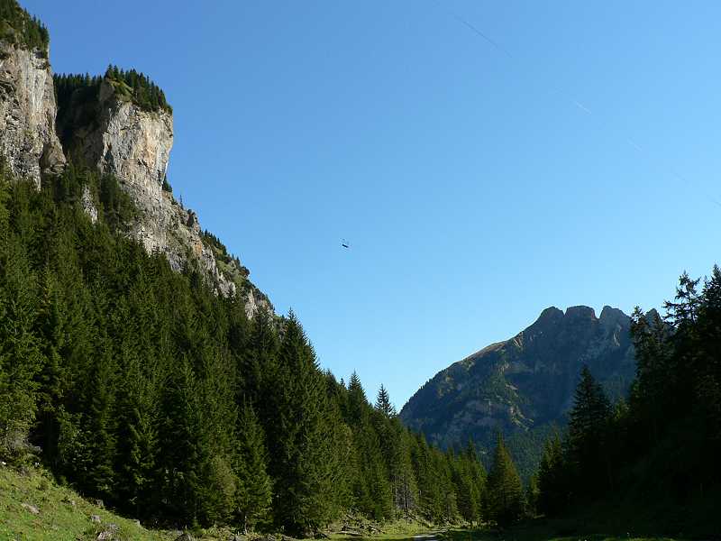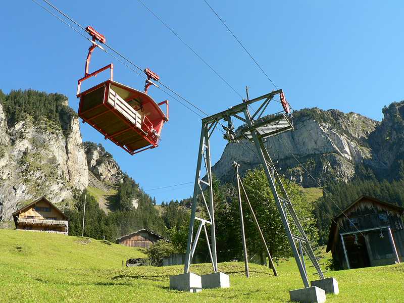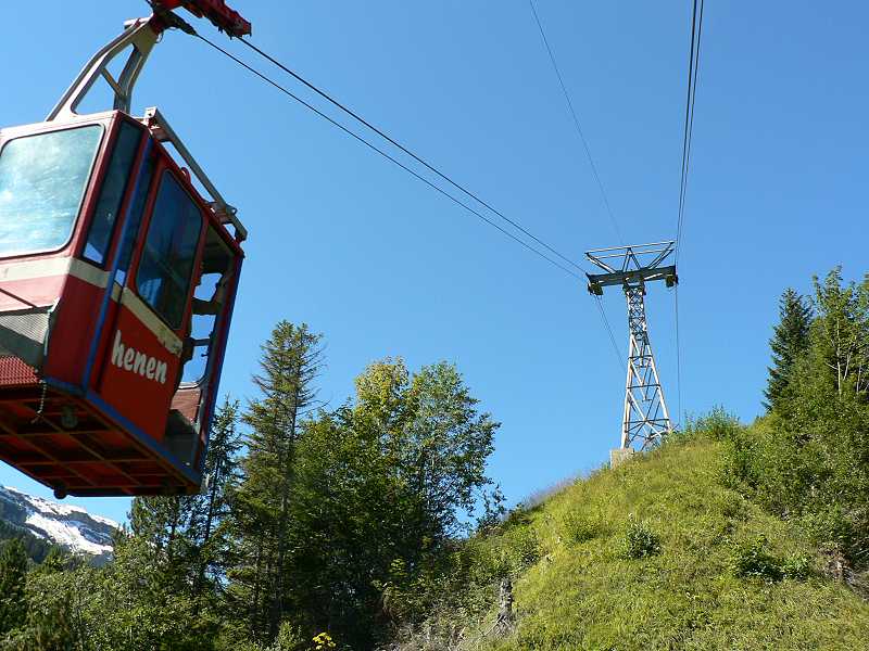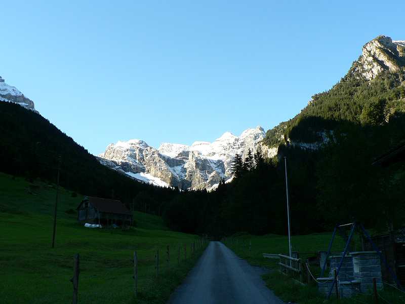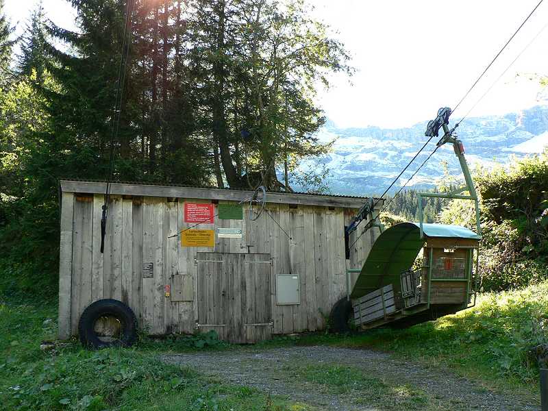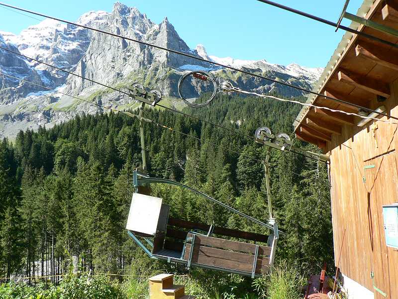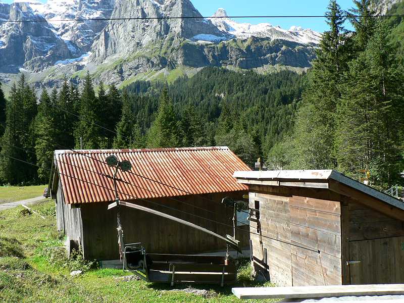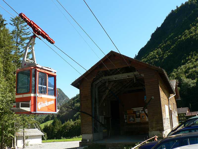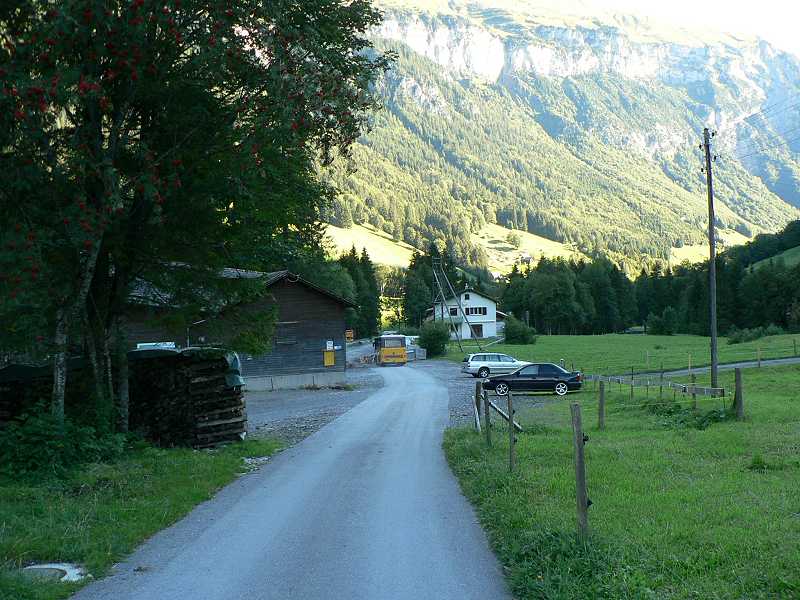 Knattern fährt der alte NAW Bus ein. Los geht die Reise über Seedorf nach Isleten. Hier beginnt die steigung. Ungeduldig warten schon die Autofahrer auf den Bus. Denn hier hersch hirarchie. Zuerst der Bus, dann die Autos. Immer wenn ein Bus die Enge Strasse nach Isenthal hochfährt müssen die Autos warten und hinter den Bus her fahren. So ist das Leben. Der Bus muss ja auch seinen Fahrplan einhalten. Die Strasse ist mit Dynamit in die mehrere hundert meter hohe Felswand wie ein Saum eigesprengt. Blickt man aus dem Fenster des Busses sieht man nur eine Senkrechten abgang bis ind unendliche Bau des Vierwaldstättersee. Weiter oben folgt die Strasse dem zur Rechten steil abfallenden Tobel. Hier wachsen auch wieder Bäume im gegensatz zur Felswand. Nach etwa 30min erreichen wir Isenthal den Hauptort. etwa 550 Einwohner zählt die Gemeinde. Der Ort besteht aus einer Kirche, einer Schreinerei, Schulhaus für Grundschule, Dorfladen (Milchhüsli) nochmals einer Schreinerei sowie 2 Restaurants mit Hotellerie. Zudem 2 Duzend Wohnhäuser und etwa gleich viele Gehöfte. Hier zweigt das Wilde Chleital ab. Der Bus folgt weiter dem Grosstal. Nächste Haltestelle Seilbahn Furgglen. Lassen wir rechts liegen. Die Strasse wird schlechter und schlechter. Das Augusthochwasser hat sie unterspühlr darum kaum asphaltiert teilweise einspurig immer wieder Bauarbeiter ab renovieren. Nach weiteren 10min erreichen wir die Endstation St. Jakob. Hier ist entgültig Fertig mit Asphaltierten Strasse. Zudem hat das Hochwasser hier eine Rechte Wüste hinterlassen. Auch die Seilbahn in St Jakob lassen wir rechts liegen. Zu fuss geht es weiter und weiter in das immer Enger werdende Grosstal. Sanft ansteigend folgt die Strasse dem Im Weiler Alt Rüti, etwa 45min Fussmarsch, ist wirklich Schluss für Motorfahrzeuge. Ab jetzt nur noch 4X4. Ein alter Saurer 2DM mit Kranhaufbau steht am Strassenrand über dem Fluss. 3 Bauarbeiter versuchen mit einfachstem Mittel wie Holz und Kies die Strasse vor Unterspülung zu Schützen. Die Landschaft hier ist eine Wucht. bizzarre Felsformationen. Senkrechte Felswände, hundert Meter hohe Wasserfälle und darüber der Blüemlisalpgletscher des Engelberg und Urner Rotstock mit seinem ewigen Schnee. die Strasse fährt weiter rauf bis auf die Gossalp. Und hier ist dann auch füt 4x4 Schluss. Hier steht sie die Talstation der Luftseilbahn Gossalp-Oberalp. Verstohlen stehen 2 Motocross Maschinen an der Rückwand der Talstation. Für was die wohl sind?? Hier ist man ganz alleine. Telefon an der Talstation ist Tod. Die hier oben sehr kurze Alpsaison von nur 2 Monaten ist schon zu Ende. Bahn geschlossen. Nichts destotrotz es war ja im Internet so angegeben. Ein versuch wars aber wert. Die Landschaft ist trotzdem umwerfen. Wild und frei. Einfach Natur Pur am Ende der Welt im letzten Winkel der Schweiz. Ehrlich ich war schon an vielen Orten in der Schweiz. Aber derart abgelegen hab ich mich noch nie gefühlt.