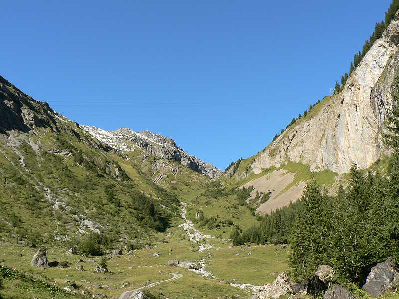 Dateikommentar: Am nde der Wlt die Gossalp. In einem Grossen Bogen folgt der Weg den letzten Anstieg zur Talstation.