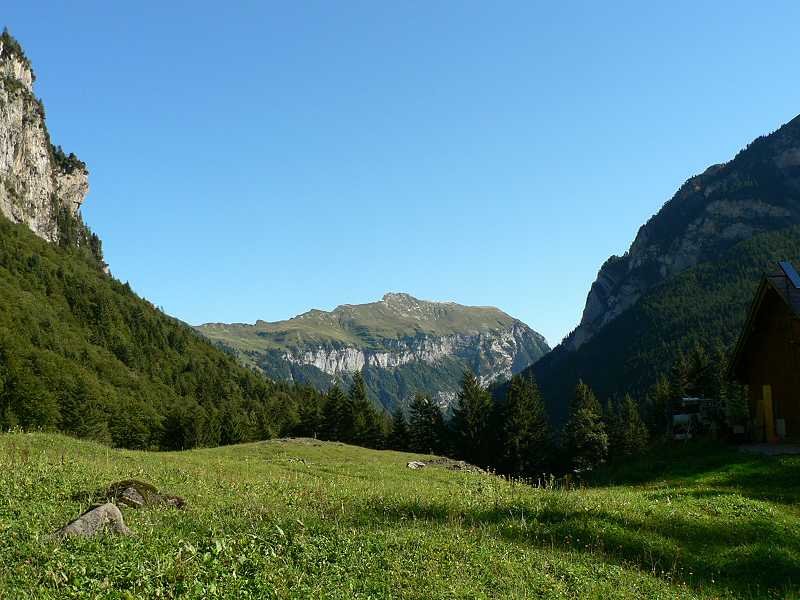 Wo liegt Isenthal. Isenthal ist eigeklemmt zwischen Engelberger Rotstock, Niederbauen, Schwamis und Gitschnen. Gegen Osten fällt das Tal steil über eine Senkrechte Felswand zum Urnersee ab. Eigendlich sind es 2 Täler. Das Chleital (Kleintal) und das Grosstal beide treffen sind in Isenthal dem Hauptort, was der Region ihren Namen gab. Anreise. Alles der Reihe Nach. Ich stehe am Schiffssteg in Flüelen. èber dem Quai steht Willhelm Tell Express. Dahinter am anderen Ende des Sees erblickt man den Berg mit dem Malerischen Name "The real Swisslife". Rechts davon liegt das Swiss knife Valley und links Lutown. Ach wie schön diese heimatlich klingenden Namen.