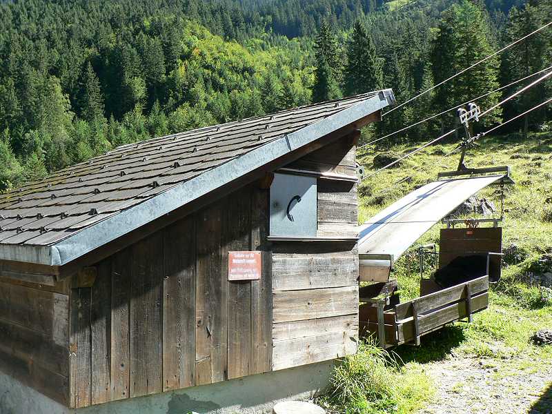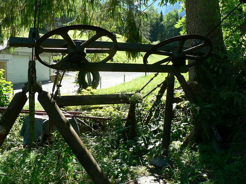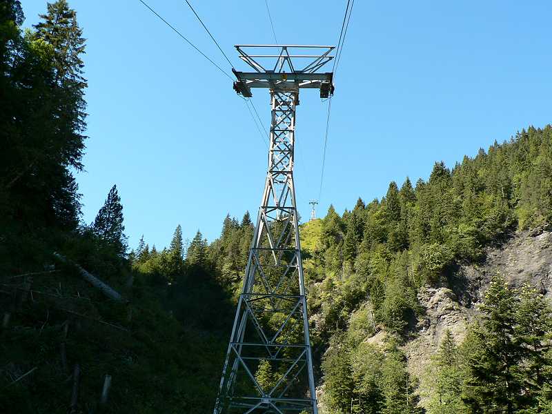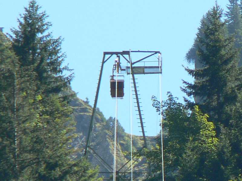 Dateikommentar: Unverrichtete Dinge gehts wieder berab. Anscheinend gibt es hier doch Leben. Denn hoch über dem tal quitsch und rattert langsam eine Materialbahn vor sich hin.