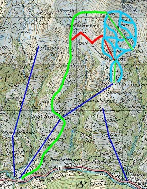 Dateikommentar: Got der ehem Skilift und die Abfahrt dazu, Grün die Lifte noch in Betrieb Blau die Zubringerbahnen.