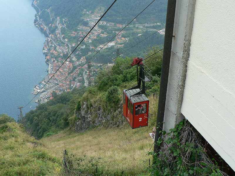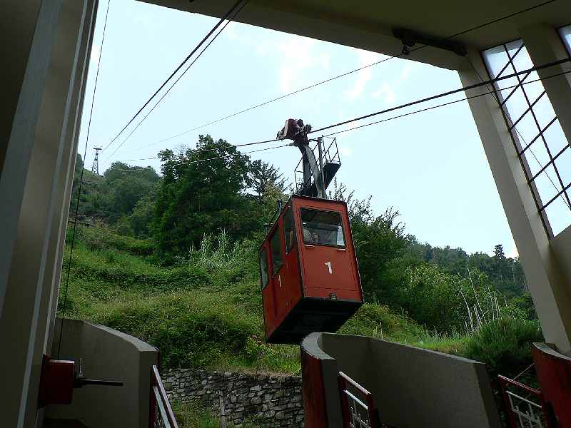 Oder ist das alles nur verdammt gute Menschenkenntnis?? Naja nichts destotrotz hoch nach Sighignola vorbei an 2 verrostete und vergammelten Skiliften. Irgend ein Italienisches Fabrikat. Keine Ahnung.... Wer weis was für eines?? Angeschrieben war Alpimpianti AG (Siehe Schild) Am eine Lift war schon das Seil demontiert. Neu war an der bergstation ein Zauberteppich sowie 2 Schneekanonen. Die Pistenmaschinen sahen nicht mehr Fahrbar aus. Zur Sighignola. Hier wurde 68 eine Luftseilbahn von Campione hoch gebaut. Da die Bahn durch 2 Länder geht mussten 2 Konzessionen geholt werden. Bei der Schweiz gings zu lange dann war die Gesellschaft konkurs bevor die Bahn fertiggestellt war. Und da steht sie jetzt im Rohbau seit fast 40 Jahren. Technik ist grösstenteils schon eingebaut. Ziemlich gespenstig da drin. Vor allem der tiefe Spannschacht. Die Stützen (Zumindest eine) steht auch schon und auf dem Dach liegt ein Pendelarm der Kabine. Weiter gings vorbei an vielen Bauruinen die nie Fertig gestellt wurden zum Monte Casle. Hier endete eine Standseilbahn auch stillgelegt. Allerdings wird die Bergstation mittlerweile renoviert. Vielleicht die Bahn auch erneuert? Hier in dieser Region hinter dem Monte Generoso gibt oder eher gab es diverse Skigebiete. Davon besteht ausser den Liften am Sighignola noch ein kurzer Tellerlift am Capanna Bruno zum Piz della Croce. Der Hauptlift untypisch für Italien, komplett demontiert. Auch die restlichen beiden Lifte waren Ratzpuz weg. Hersteller dieses Liftes ????? Zum Schluss gings noch nach Pigra. Knattert ganz schön durch die Engen Gassen. Dieser Ort wird seit 1948 von Argegno am Comersee mit einer 15er Pendelbahn erschlossen. zwar 1994 von Sacif erneuert, grösstenteils aber noch die alte Technik. Wer die Bahn ursprünglich gebaut hat?? Vielleicht C&T oder sowas. Kuruios sie besitzt kein verschlossenes Tragseil. Mit 3,40 Euro für eine Retourfahrt mit tollem Seeblick Preisgünstig. Bahn ist auch recht beliebt nur die Italienische einstellung zum Fahrplan naja. Wird da auch gestreikt??