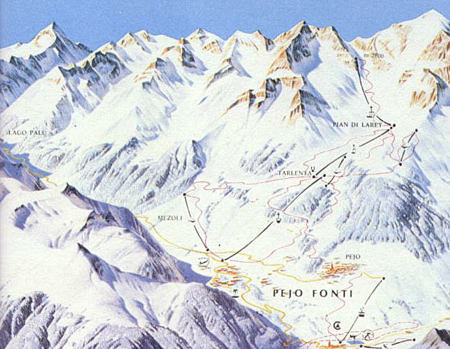 Hier noch ein alter Liftplan von Pejo, auf diesem ist der Mezoli auch noch als Schlepplift eingezeichnet also hat der schon einige Jährchen auf dem Buckel.