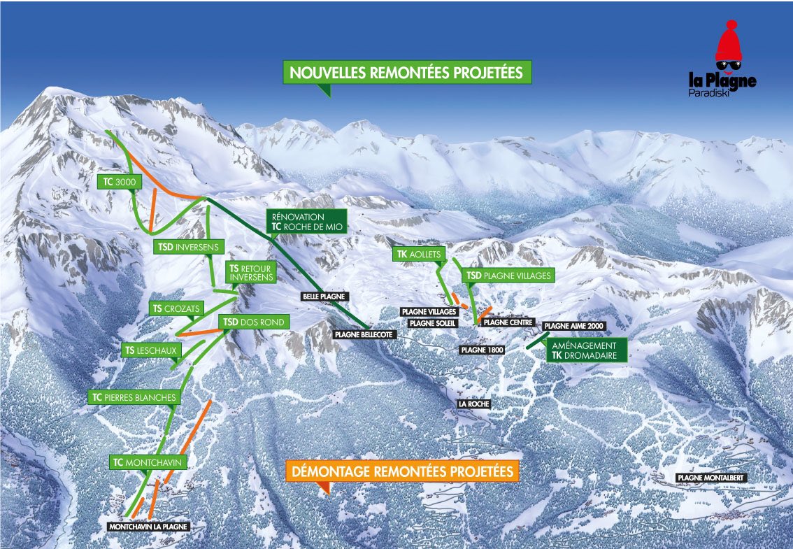Der Plan ist extrem ambitioniert. Vor allem aber werden teilweise erst wenige Jahre alte Umstrukturierungen komplett über den Haufen geworfen - siehe Umstrukturierungen in Les Coches. Wenn man das wirklich durchzieht ist La Plagne in ein paar Jahren ein völlig anderes Skigebiet.