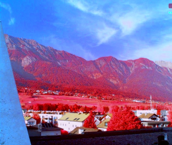 Dunst: Dunst scheint auch nicht immer gleich zu sein, es kommt anscheinend drauf an, in welcher Richtung die Sonne steht, und evtl. auch was für ein Dunst es ist - im Sinne von: Smog vs. verdunstendes Wasser vs. Nebel? Zurückgehender Nebel heute hatte jedenfalls kaum IR durchgelassen, jedenfalls wesentlich weniger als der Dunst bei den Test-Fotos von letzter Woche.