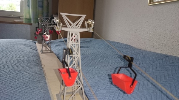 Aber Frage: Weshalb Seilbahnmodelle stets extra kindisch unrealistisch hergestellt werden. Bei manchen Spielzeugbahnen ist immerhin die Kabine schön gestaltet (die berühmte Rigi Bahn), oder auch die (leider Rundrohr) Masten dazu (Jägerndorf). Die klassische Brawa ZUB Gondelbahn in H0 ist immerhin nett gestaltet, aber derart klein dass der "Faden" rollenlos über Stützen gezogen wird, und das Ganze nervös zittert. Geht garnicht.