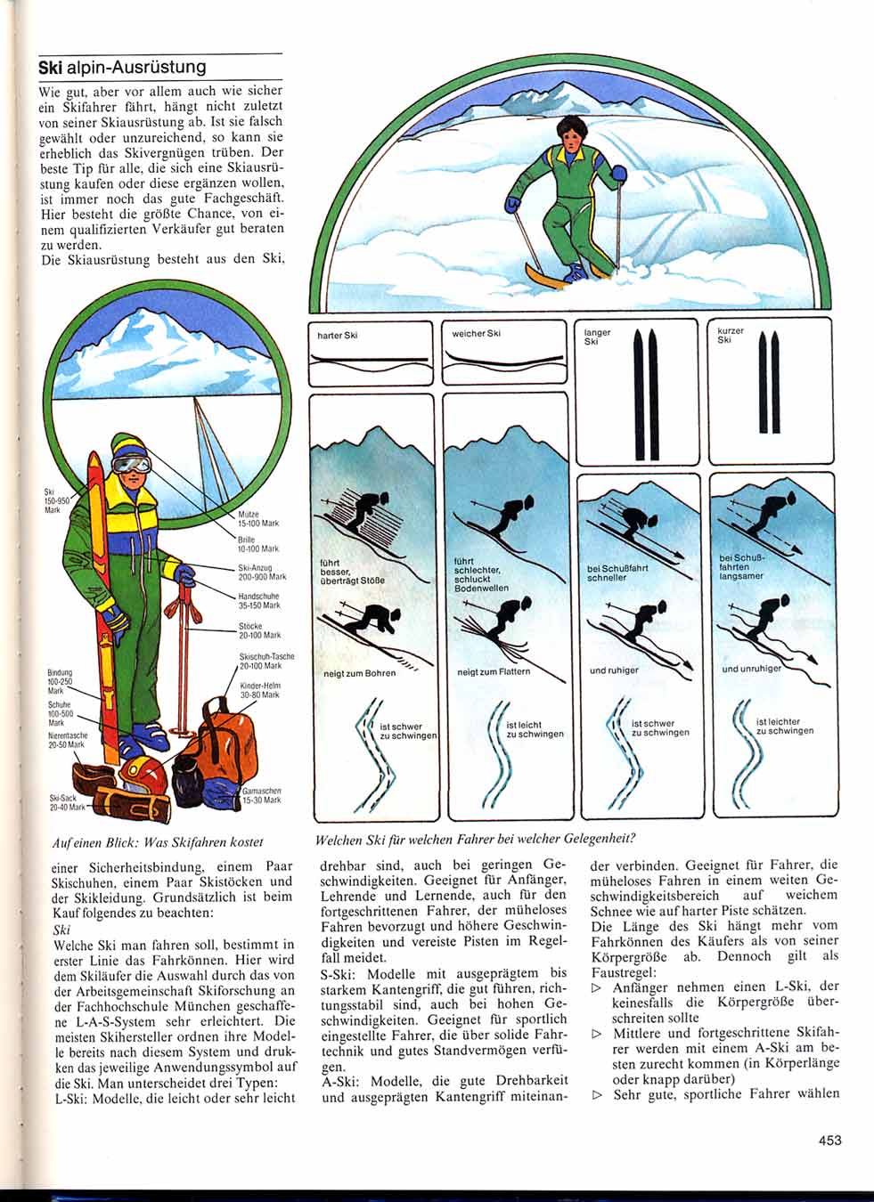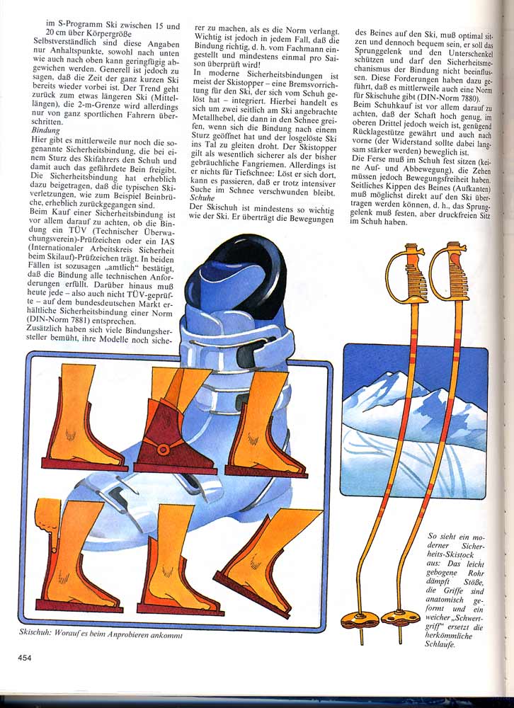 . Damals war es ausrüstungsmässig für Tourengeher fast eine Katastrophe, da der Markt dafür extrem klein war (Skitouren gingen damals hauptsächlich Alpinisten). Sehr interessant sind darin auch die entsprechenden Kapiteln zu Lawinen bzw. Lawinengefahr ...
